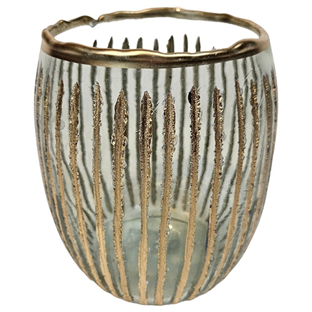 Deze stijlvolle waxinelichthouder van glas straalt warmte en elegantie uit. De subtiele gouden strepen zorgen voor een luxe accent en vangen prachtig het kaarslicht, waardoor er een sfeervol en fonkelend effect ontstaat. Perfect voor een knusse avond of als chique detail op een gedekte tafel, dressoir of vensterbank. Combineer meerdere houders voor een extra sprankelend geheel!