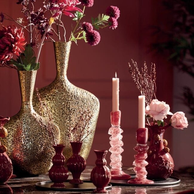 Breng sfeer en elegantie in huis met de ESTINA kandelaar van Light & Living. Deze opvallende kandelaar combineert een speelse, gestapelde vorm met  kleurnuances in roze en rood, waardoor hij een echte eyecatcher is op tafel, dressoir of vensterbank.